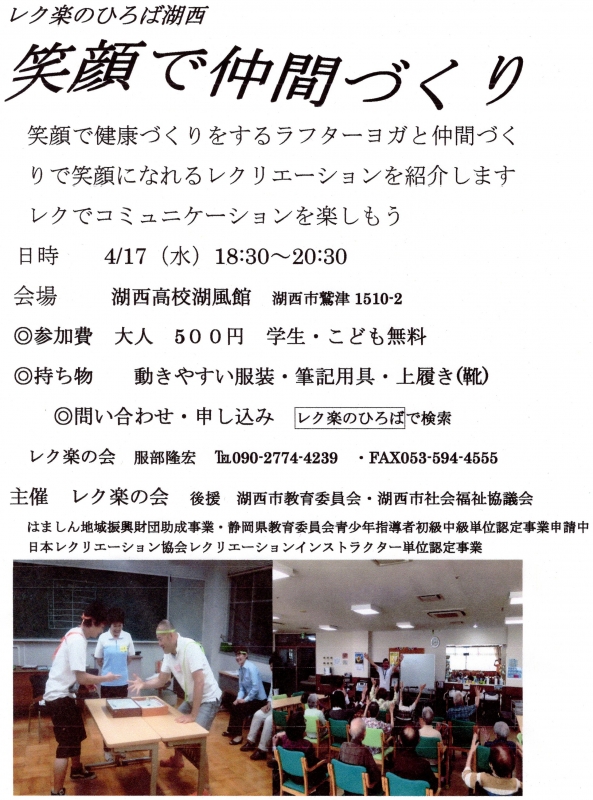 TOP > イベント一覧 > 仲間・交流・出会い > レク楽のひろば湖西 笑顔で仲間づくり