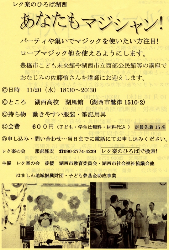 レク楽のひろば湖西 あなたもマジシャン!