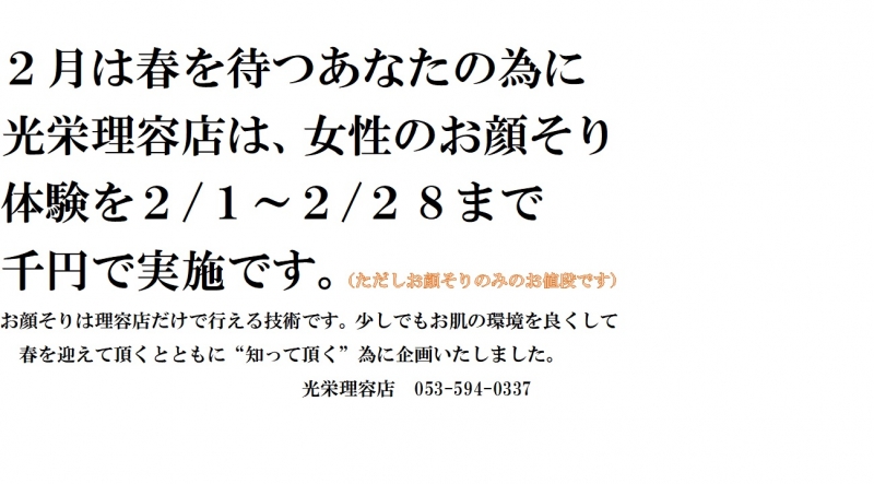 投稿者:光栄理容店 作成日:2023/02/01 08:48:37 更新日:2023/02/01 08:48:37