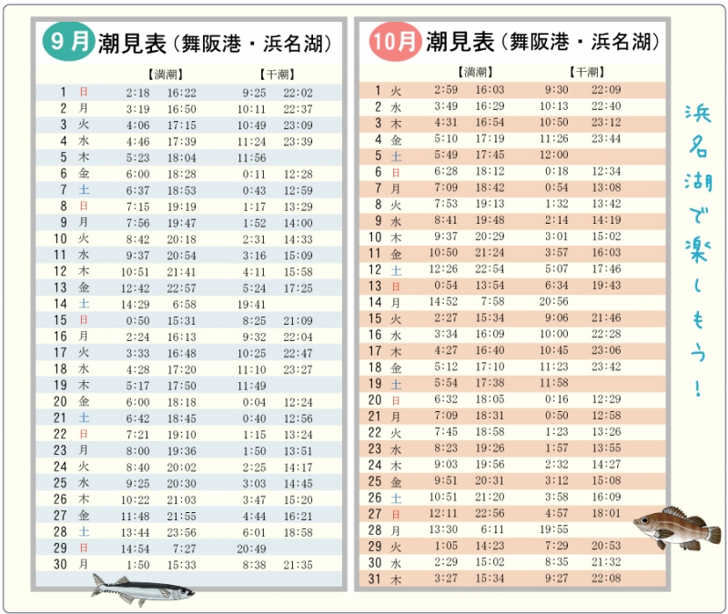 TOP > トピック一覧 > 地域情報 > 2013年 浜名湖弁天島【舞阪港】 9月10月潮見表カレンダー