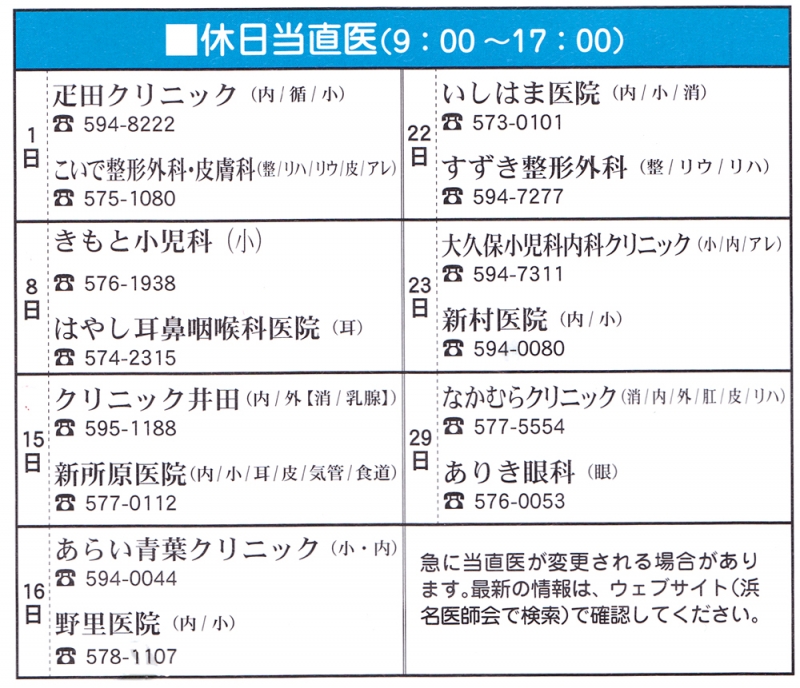 TOP > トピック一覧 > 地域情報 > 2013年9月の当直医(湖西・新居)情報
