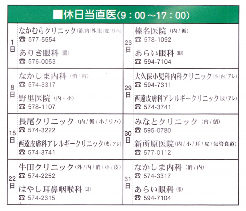 TOP > トピック一覧 > 地域情報 > 12月の休日当直医(湖西市内)