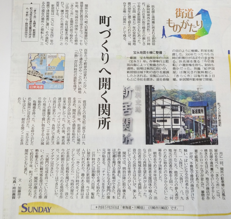 TOP > トピック一覧 > 地域情報 > 東海道「新居宿」が中日新聞に掲載されました
