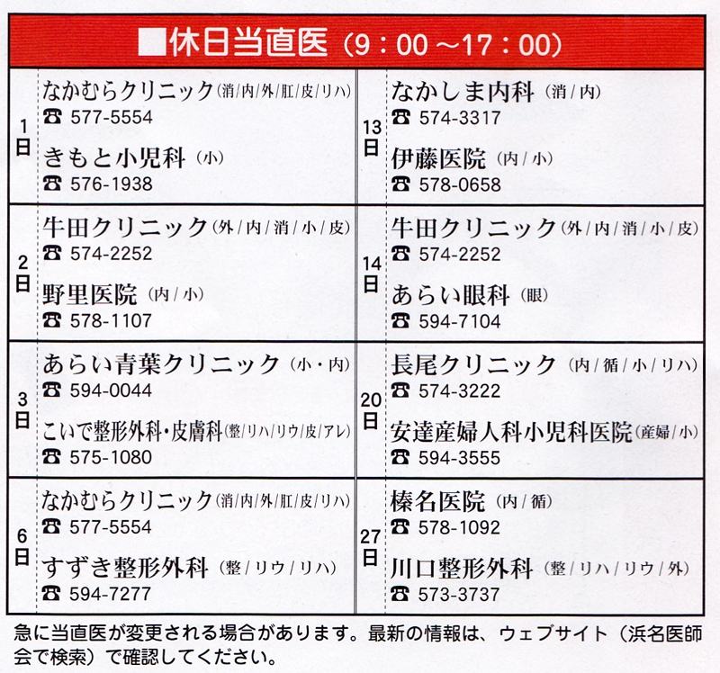 TOP > トピック一覧 > 地域情報 > 1月休日当直医(9:00~17:00)
