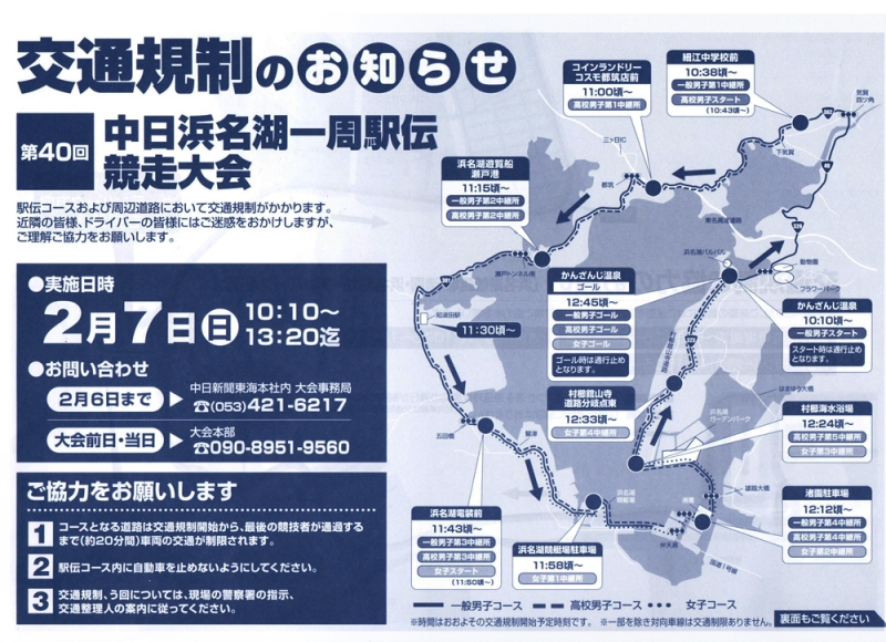 中日浜名湖一周駅伝競走大会のための交通規制について