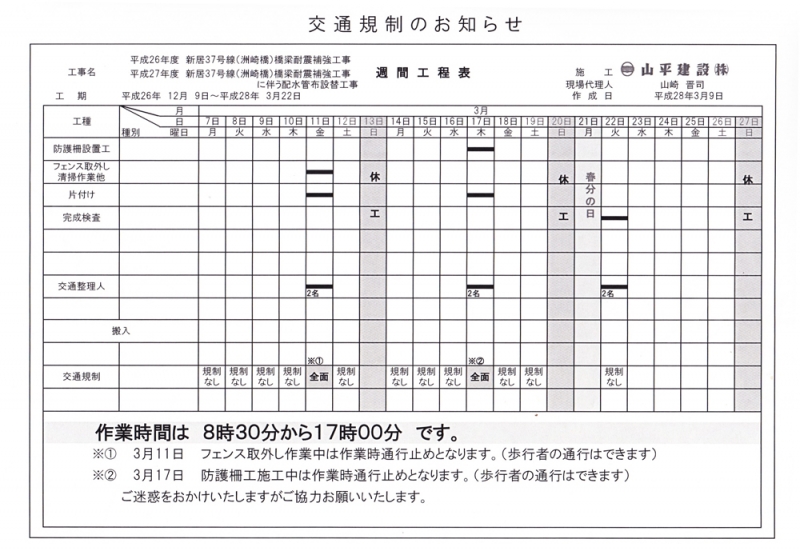 TOP > トピック一覧 > 地域情報 > 新居37号線(洲崎橋)交通規制 および工期完了のお知らせ