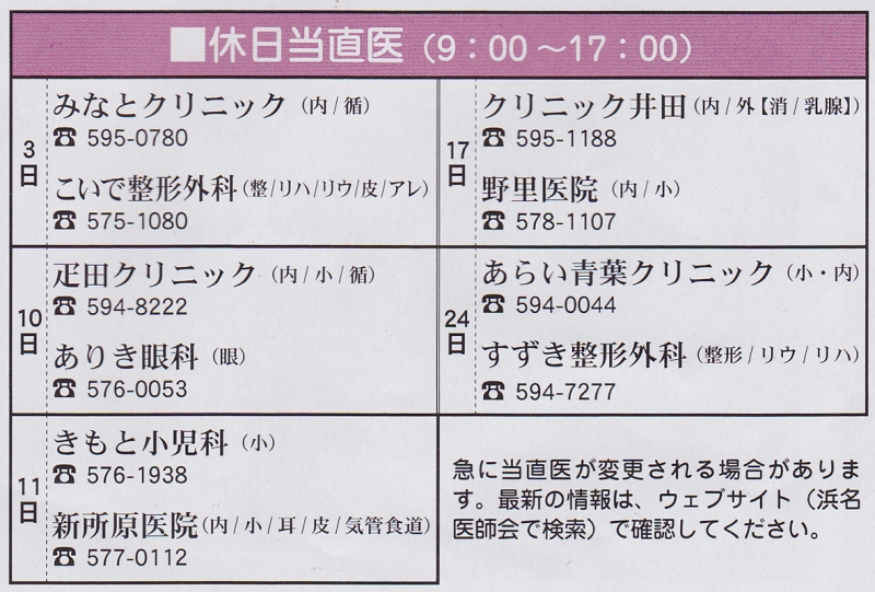 TOP > トピック一覧 > 地域情報 > 2月の休日当直医情報 (9:00~17:00)