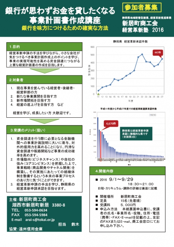 TOP > トピック一覧 > 地域情報 > 新居町商工会経営革新塾のご案内