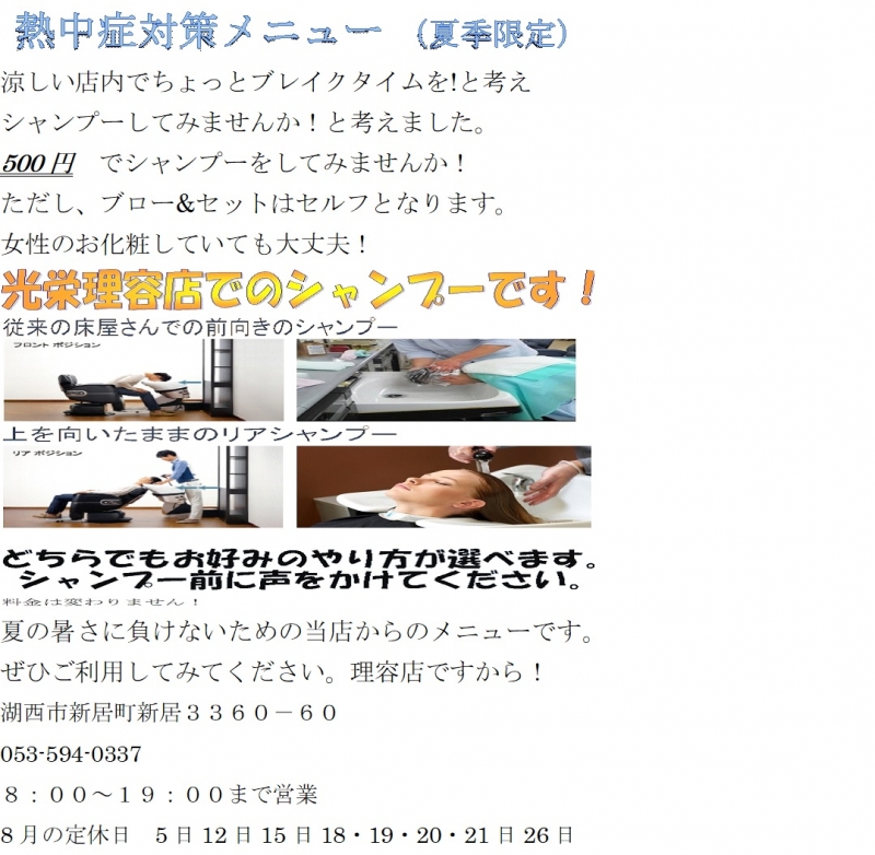 投稿者:光栄理容店 作成日:2019/07/31 16:03:51 更新日:2019/07/31 16:03:51
