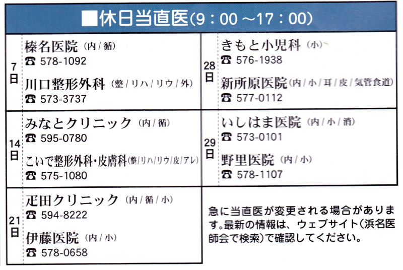 TOP > トピック一覧 > 地域情報 > 2013年4月 湖西市休日当直医